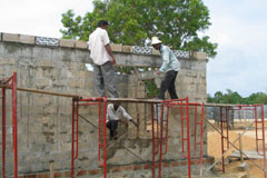 Das Gelände Auf dem neuen in Frage kommenden, sicher gelegenen Areal (15 ha) werden zurzeit ein Kindergarten, eine Grundschule und eine weiterbildende Schule gebaut. Dieses Zentrum wird durch das Waisenhaus ergänzt. Somit sind notwendige Infrastruktureinrichtungen (Wasser, Strom, usw.) vorhanden. ![]() Bei denen sich im Bau befindenden Projekten handelt es sich um von der TRO realisierte und betreute Maßnahmen, die von jeweils einer deutschen Organisation mitfinanziert werden. Zahlreiche deutsche Hilfsorganisationen wie GTZ, ASB, Malteser Hilfswerk, THW, usw. sind hier vor Ort im Einsatz. Die TRO verfügt über eigene Fachkräfte, die Organisation und Durchführung des Wiederaufbaus durchführen können und wird darüber hinaus von im Ausland lebenden tamilische Fachleuten unterstützt. Qualifizierte Baufirmen sind ebenfalls vorhanden und die Baustoffe werden größtenteils in der näheren Umgebung gefertigt.