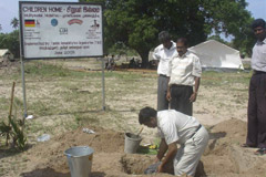 Grundsteinlegung Bei unserem Projekt ist die Finanzierung zu einem Großteil gesichert, sodass mit dem Bau der ersten Gebäude im Juli 2005 begonnen werden konnte. Bis Dezember sollen die Rohbauarbeiten abgeschlossen sein, da in Sri Lanka dann die 3-monatige Regenzeit beginnt. Der Bau unseres Waisenhauses wird vor Ort von einem Mitarbeiter der TRO betreut, überwacht und dokumentiert, sodass wir ständig über den aktuellen Stand informiert sind.